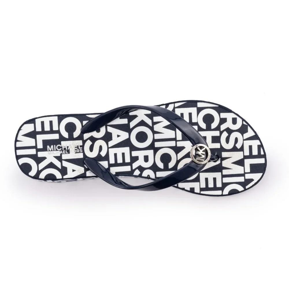 Elevate your summer footwear game with these stylish Michael Kors Women Bedford Logo Wedge Flip Flop Sandals in Black/ White.
